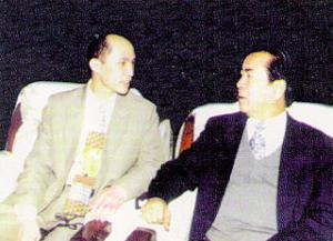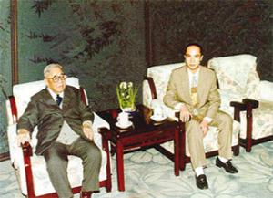 原全國人大副委員長盧嘉錫同志與董事長李浪輝親切交談題詞