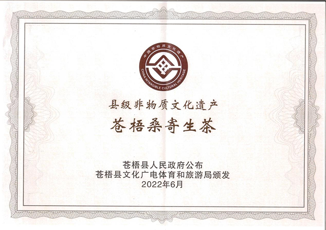 喜報(bào)!蒼梧桑寄生茶制作技藝榮獲縣級(jí)非物質(zhì)文化遺產(chǎn)項(xiàng)目