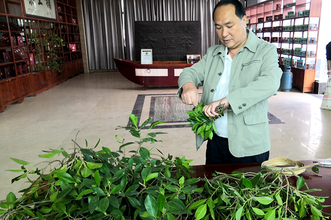 (李浪輝晾曬桑寄生茶)